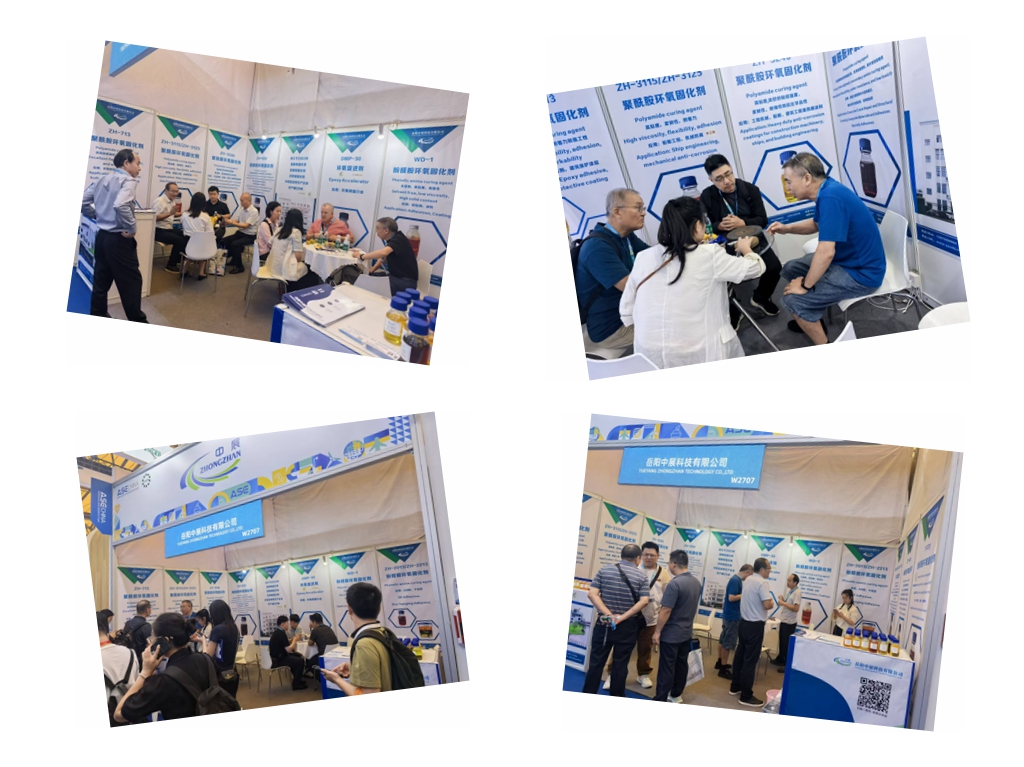 展会上,岳阳中展科技重点展出了一系列自主研发的高品质环氧固化剂和促进剂产品。这些产品依托公司先进的生产技术与严格的质量管控体系,在性能稳定性、环保性以及适配性等方面均达到行业领先水平,能够充分满足不同客户在胶粘剂生产过程中的多样化需求,成为展会现场的一大亮点。